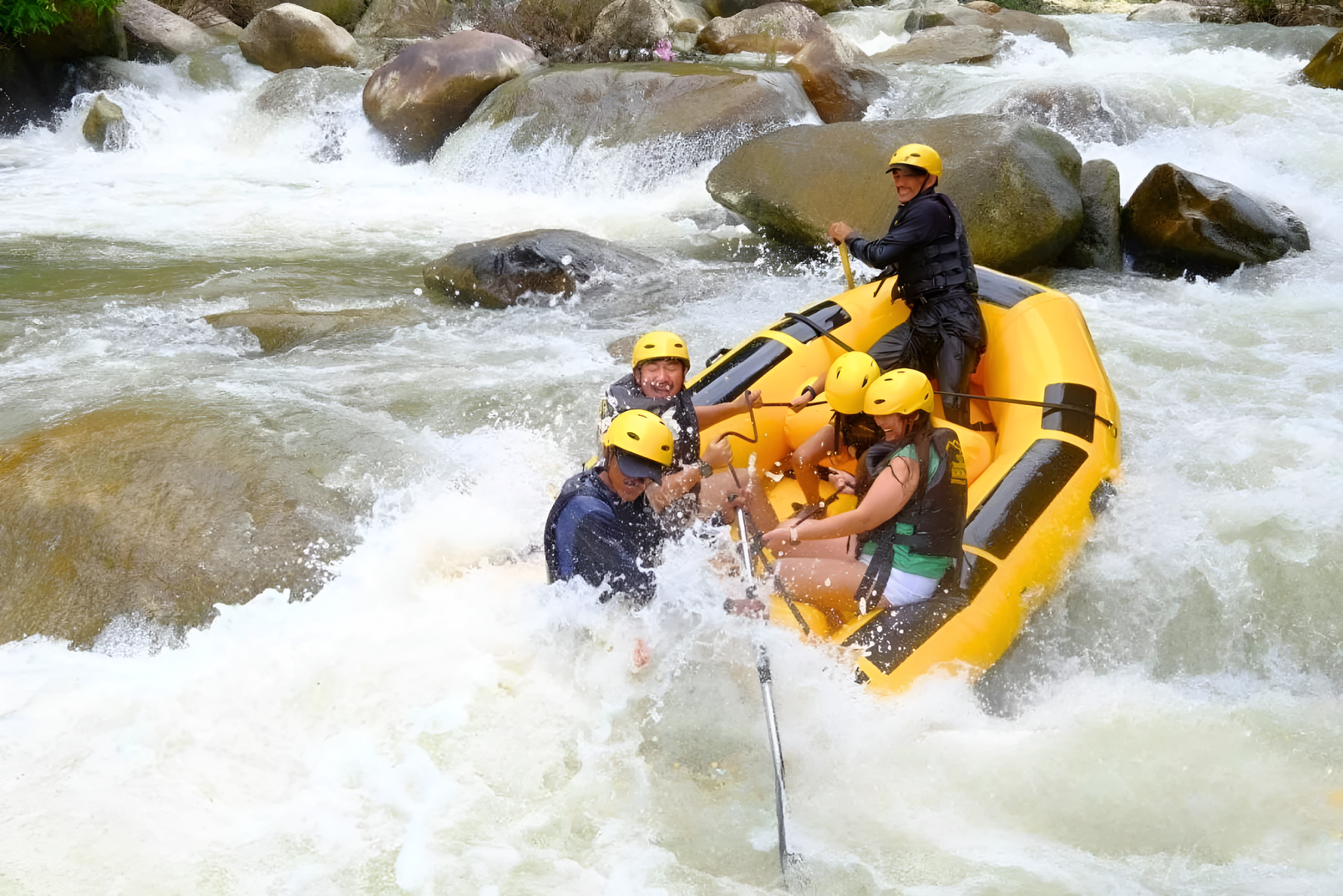Gear up for a day of pure adrenaline and stunning nature! Experience the thrill of white water rafting through jungle rapids and the serenity of traditional bamboo rafting