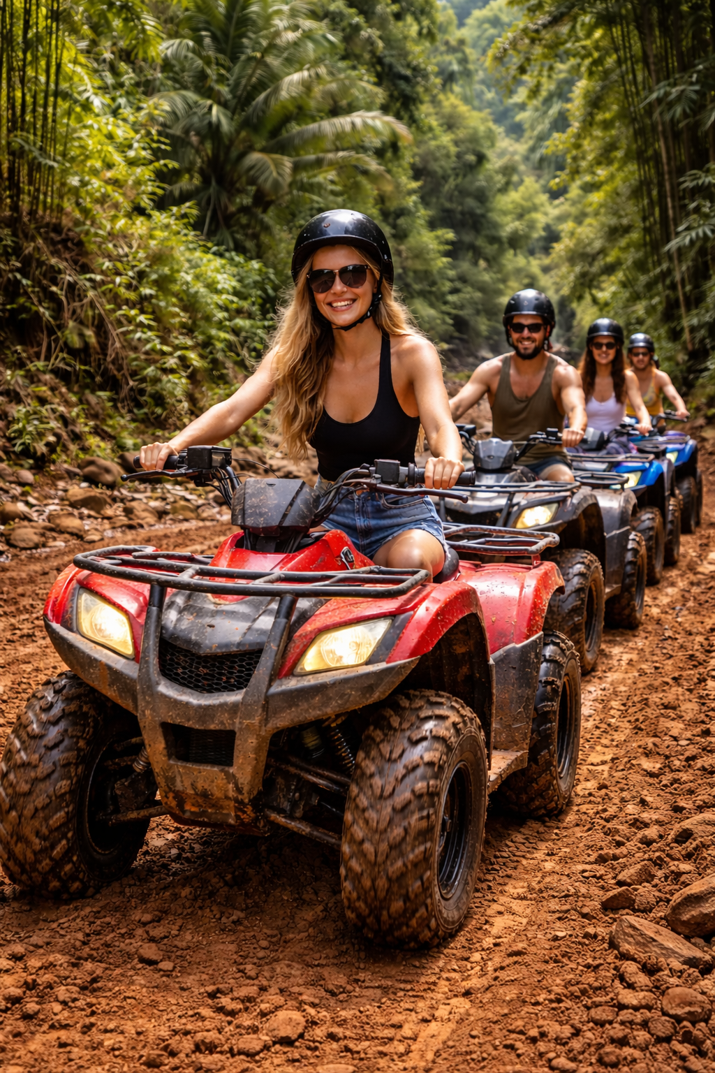 Begin your day floating peacefully down a jungle river on a handcrafted bamboo raft. Surrounded by dense forest and the gentle sounds of wildlife, this part of the atv phuket tour offers tranquility and a deep connection with nature.